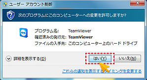 ※PCのセキュリティ設定のレベルにより、このような画面が表示される場合があります。「はい」をクリックして すすめてください。